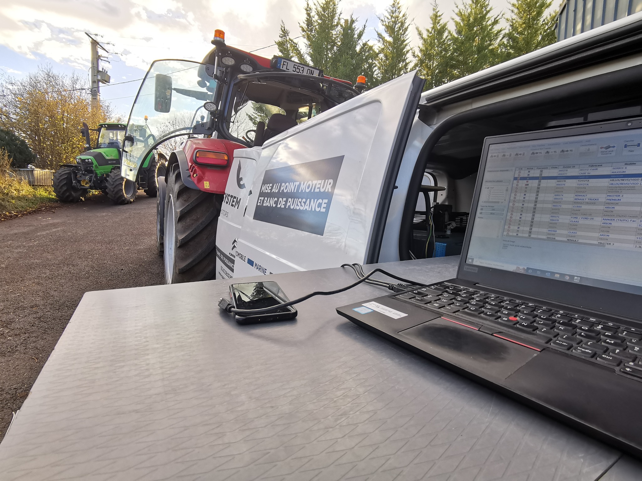 AM Optimisation dispose d’un banc de puissance mobile qui se déplace directement sur votre exploitation en Auvergne, Limousin et Loire.